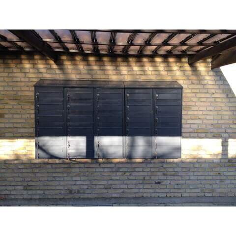 Med en lille ekstra investering i et skråtag, giver i postkasse anlægget et flot og gennemgående finish uanset om det er inde eller ude. Endvidere sikre i at gamle aviser og aflagt affald ikke bliver til en åben skraldespand ovenpå postkasserne.